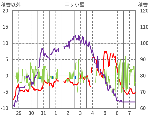 | 日 | 時 | 気温 | 降水 | 風向/風速 | 日照 | 積雪 | 降雪 |