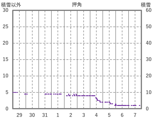 | 日 | 時 | 気温 | 降水 | 風向/風速 | 日照 | 積雪 | 降雪 |