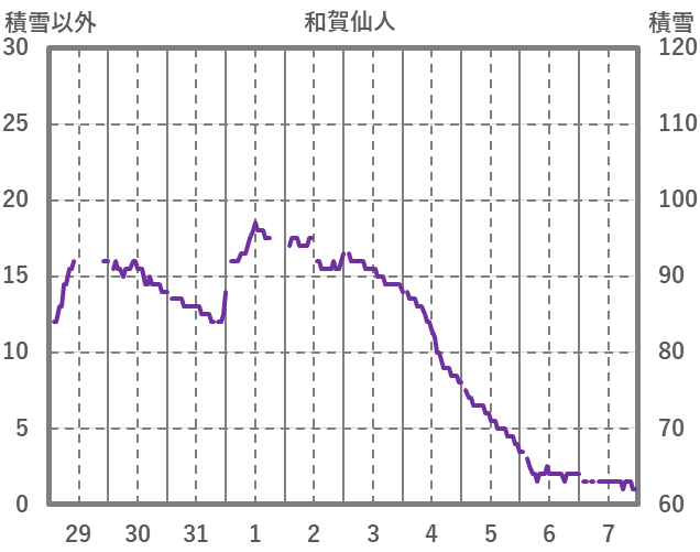 | 日 | 時 | 気温 | 降水 | 風向/風速 | 日照 | 積雪 | 降雪 |