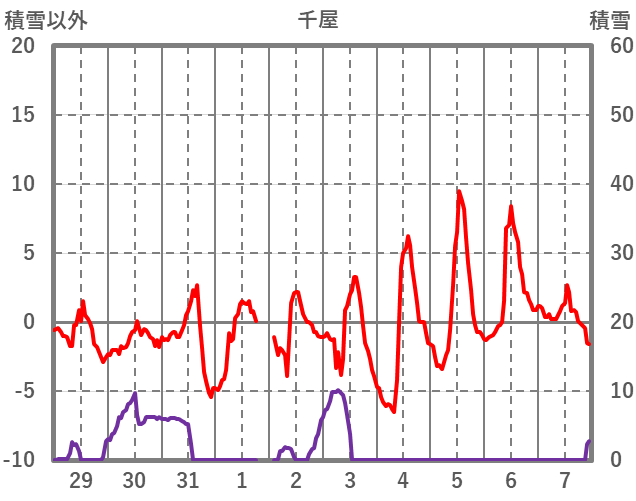 | 日 | 時 | 気温 | 降水 | 風向/風速 | 日照 | 積雪 | 降雪 |