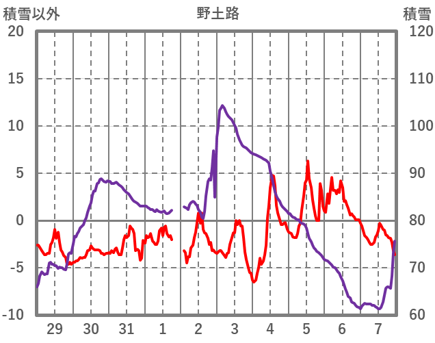 | 日 | 時 | 気温 | 降水 | 風向/風速 | 日照 | 積雪 | 降雪 |