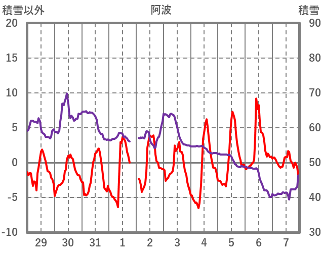 | 日 | 時 | 気温 | 降水 | 風向/風速 | 日照 | 積雪 | 降雪 |