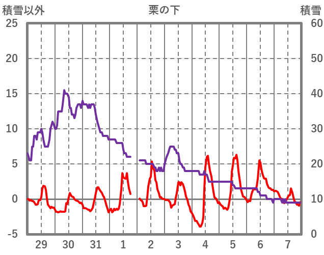 | 日 | 時 | 気温 | 降水 | 風向/風速 | 日照 | 積雪 | 降雪 |