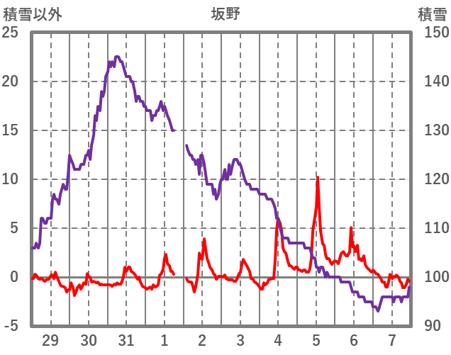 | 日 | 時 | 気温 | 降水 | 風向/風速 | 日照 | 積雪 | 降雪 |