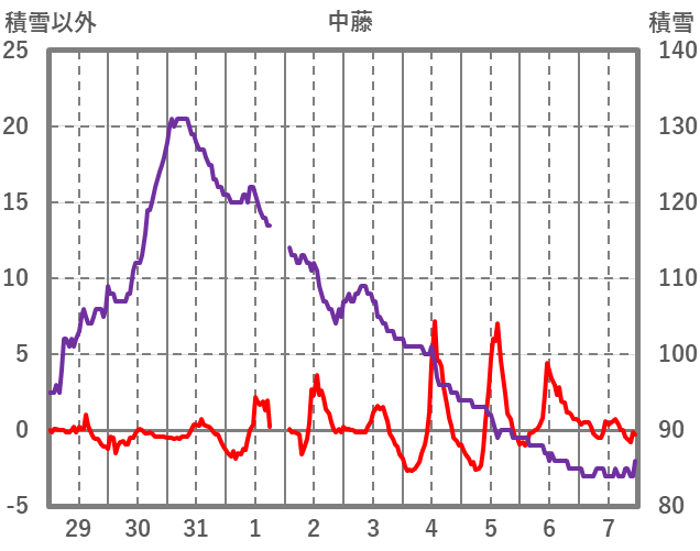 | 日 | 時 | 気温 | 降水 | 風向/風速 | 日照 | 積雪 | 降雪 |