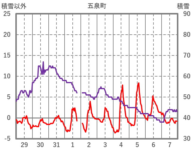 | 日 | 時 | 気温 | 降水 | 風向/風速 | 日照 | 積雪 | 降雪 |