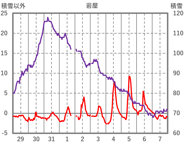 | 日 | 時 | 気温 | 降水 | 風向/風速 | 日照 | 積雪 | 降雪 |