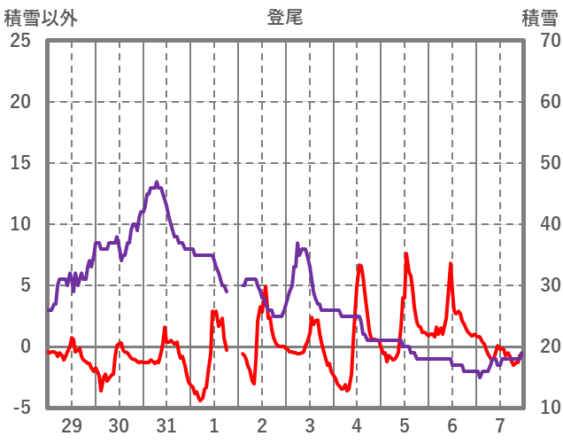 | 日 | 時 | 気温 | 降水 | 風向/風速 | 日照 | 積雪 | 降雪 |
