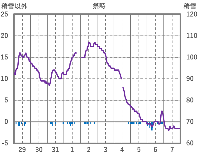 | 日 | 時 | 気温 | 降水 | 風向/風速 | 日照 | 積雪 | 降雪 |