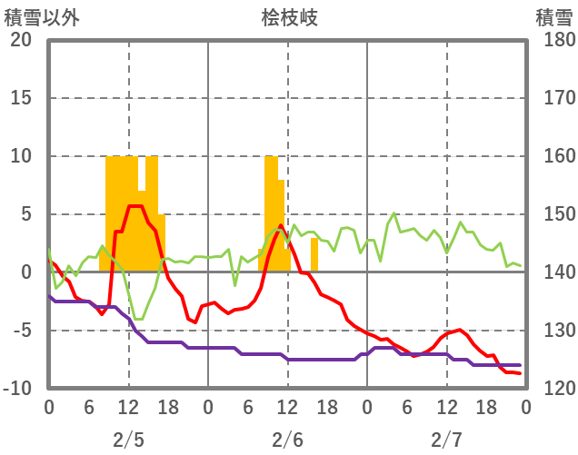 | 日 | 時 | 気温 | 降水 | 風向/風速 | 日照 | 積雪 | 降雪 |