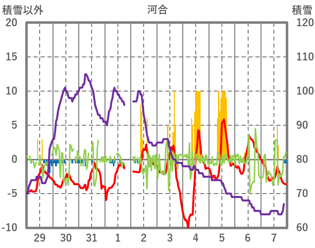 | 日 | 時 | 気温 | 降水 | 風向/風速 | 日照 | 積雪 | 降雪 |