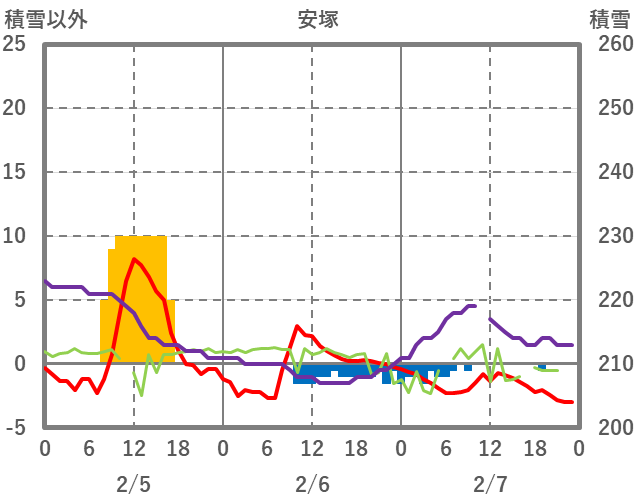 | 日 | 時 | 気温 | 降水 | 風向/風速 | 日照 | 積雪 | 降雪 |