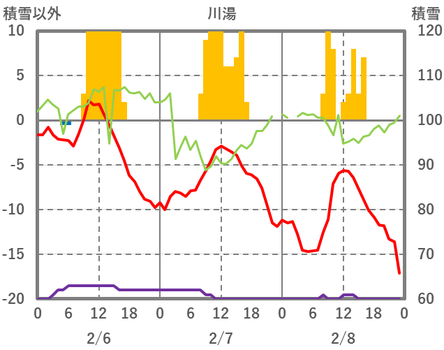 | 日 | 時 | 気温 | 降水 | 風向/風速 | 日照 | 積雪 | 降雪 |