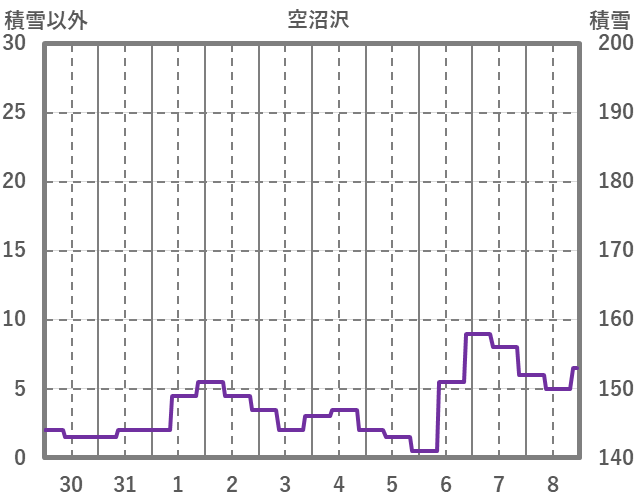| 日 | 時 | 気温 | 降水 | 風向/風速 | 日照 | 積雪 | 降雪 |