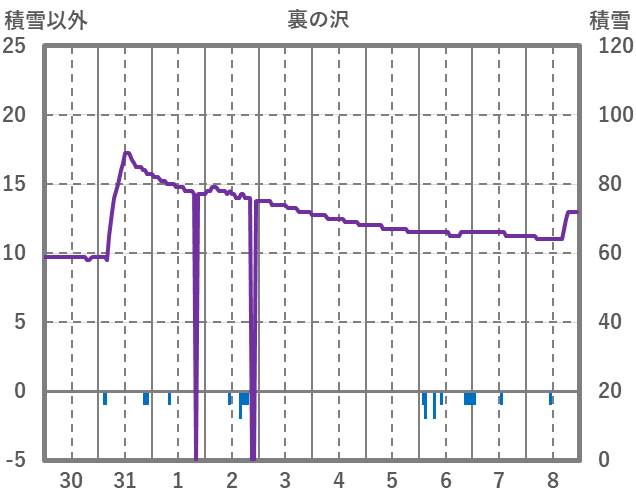 | 日 | 時 | 気温 | 降水 | 風向/風速 | 日照 | 積雪 | 降雪 |