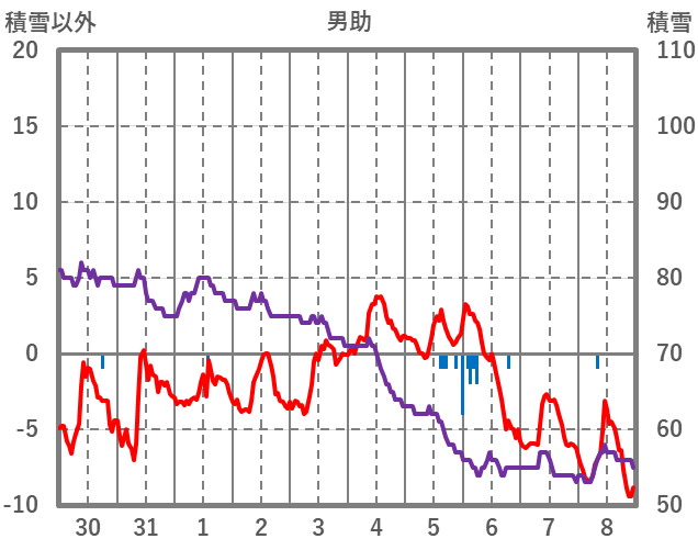 | 日 | 時 | 気温 | 降水 | 風向/風速 | 日照 | 積雪 | 降雪 |