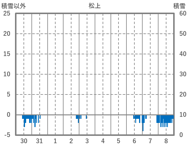 | 日 | 時 | 気温 | 降水 | 風向/風速 | 日照 | 積雪 | 降雪 |