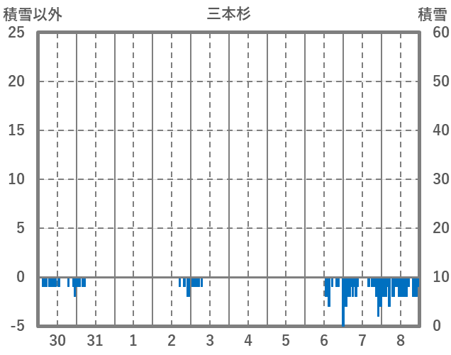 | 日 | 時 | 気温 | 降水 | 風向/風速 | 日照 | 積雪 | 降雪 |