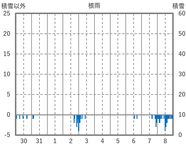 | 日 | 時 | 気温 | 降水 | 風向/風速 | 日照 | 積雪 | 降雪 |
