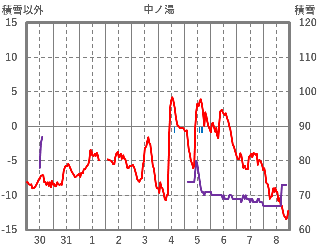 | 日 | 時 | 気温 | 降水 | 風向/風速 | 日照 | 積雪 | 降雪 |