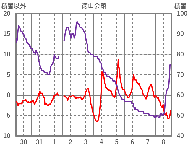 | 日 | 時 | 気温 | 降水 | 風向/風速 | 日照 | 積雪 | 降雪 |
