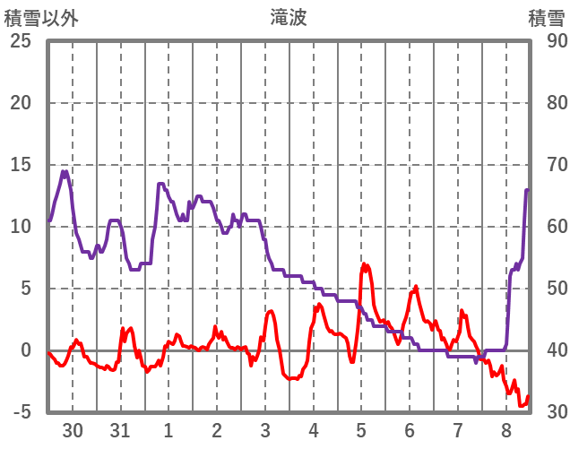 | 日 | 時 | 気温 | 降水 | 風向/風速 | 日照 | 積雪 | 降雪 |
