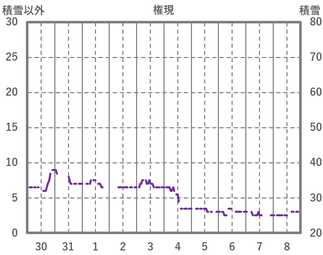 | 日 | 時 | 気温 | 降水 | 風向/風速 | 日照 | 積雪 | 降雪 |