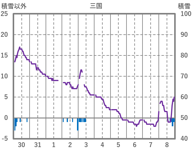 | 日 | 時 | 気温 | 降水 | 風向/風速 | 日照 | 積雪 | 降雪 |