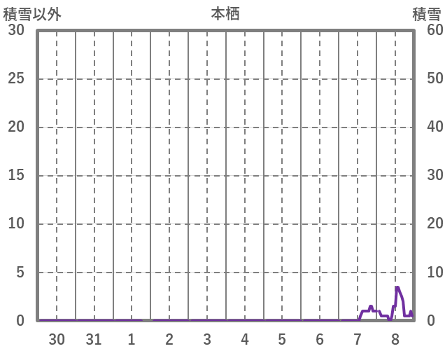 | 日 | 時 | 気温 | 降水 | 風向/風速 | 日照 | 積雪 | 降雪 |