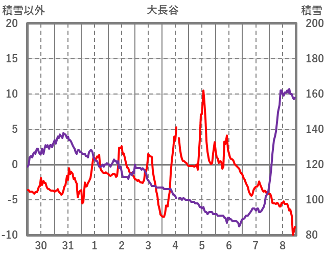 | 日 | 時 | 気温 | 降水 | 風向/風速 | 日照 | 積雪 | 降雪 |