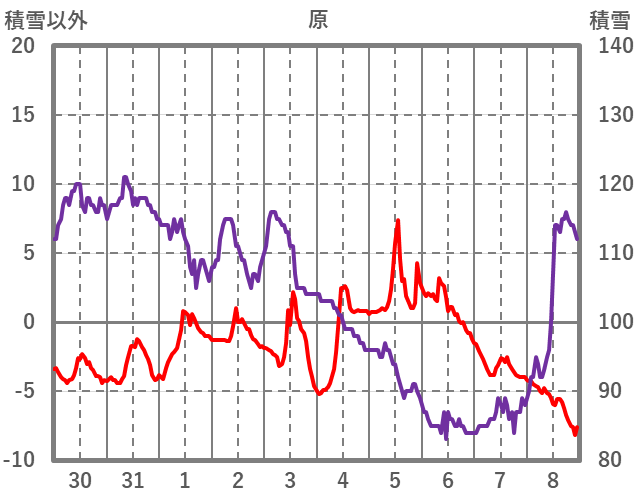 | 日 | 時 | 気温 | 降水 | 風向/風速 | 日照 | 積雪 | 降雪 |