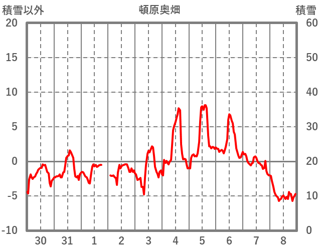 | 日 | 時 | 気温 | 降水 | 風向/風速 | 日照 | 積雪 | 降雪 |