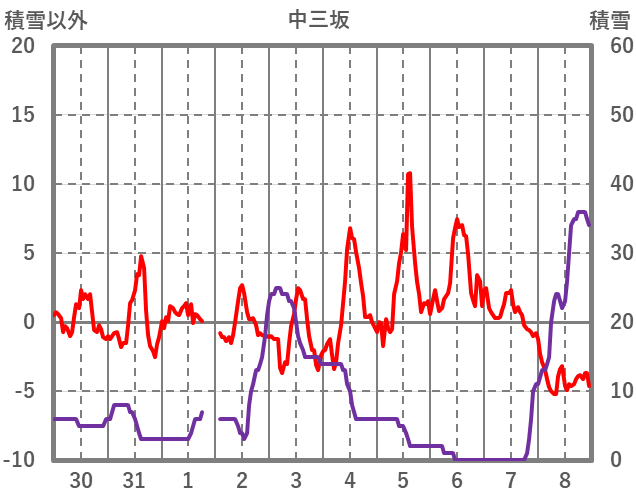 | 日 | 時 | 気温 | 降水 | 風向/風速 | 日照 | 積雪 | 降雪 |