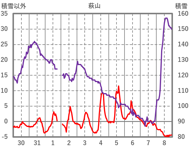| 日 | 時 | 気温 | 降水 | 風向/風速 | 日照 | 積雪 | 降雪 |