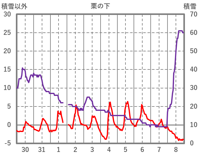 | 日 | 時 | 気温 | 降水 | 風向/風速 | 日照 | 積雪 | 降雪 |