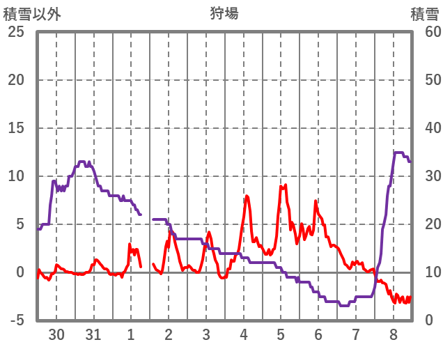 | 日 | 時 | 気温 | 降水 | 風向/風速 | 日照 | 積雪 | 降雪 |