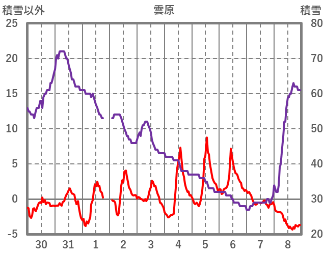| 日 | 時 | 気温 | 降水 | 風向/風速 | 日照 | 積雪 | 降雪 |
