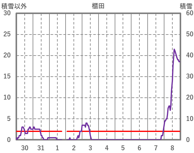 | 日 | 時 | 気温 | 降水 | 風向/風速 | 日照 | 積雪 | 降雪 |
