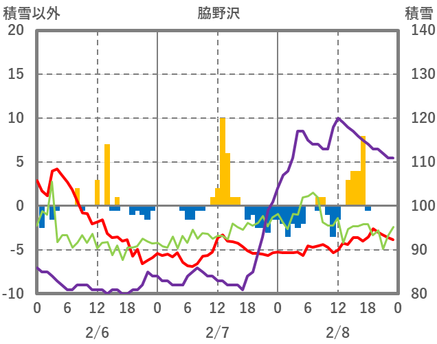 | 日 | 時 | 気温 | 降水 | 風向/風速 | 日照 | 積雪 | 降雪 |