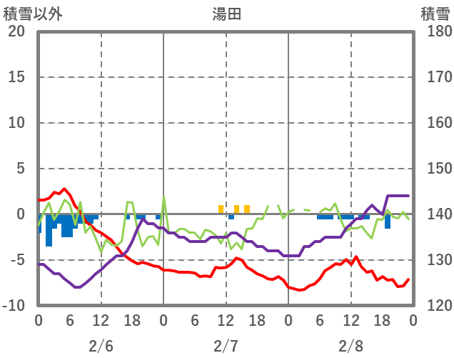 | 日 | 時 | 気温 | 降水 | 風向/風速 | 日照 | 積雪 | 降雪 |