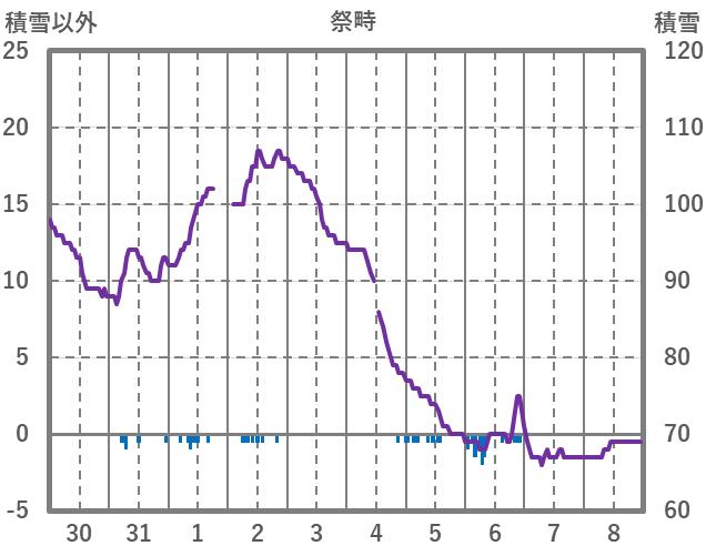 | 日 | 時 | 気温 | 降水 | 風向/風速 | 日照 | 積雪 | 降雪 |