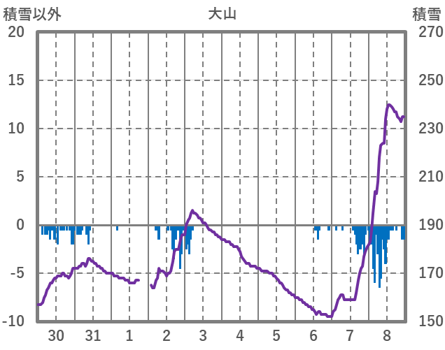 | 日 | 時 | 気温 | 降水 | 風向/風速 | 日照 | 積雪 | 降雪 |