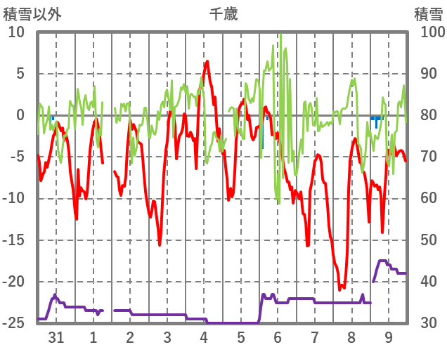 | 日 | 時 | 気温 | 降水 | 風向/風速 | 日照 | 積雪 | 降雪 |
