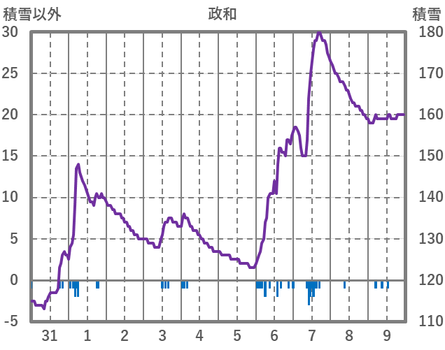 | 日 | 時 | 気温 | 降水 | 風向/風速 | 日照 | 積雪 | 降雪 |