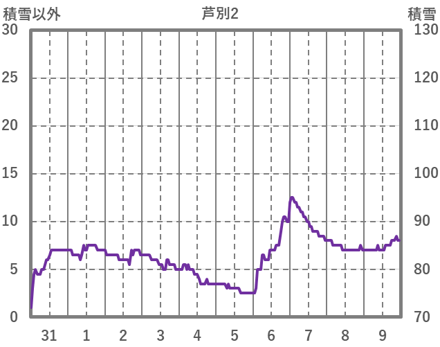 | 日 | 時 | 気温 | 降水 | 風向/風速 | 日照 | 積雪 | 降雪 |