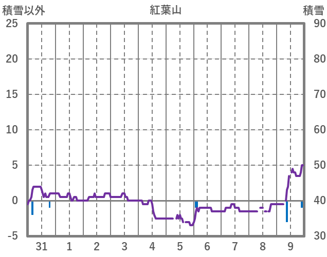 | 日 | 時 | 気温 | 降水 | 風向/風速 | 日照 | 積雪 | 降雪 |
