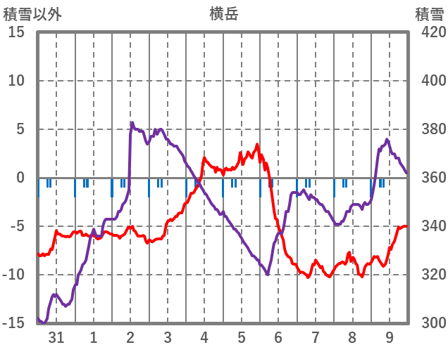 | 日 | 時 | 気温 | 降水 | 風向/風速 | 日照 | 積雪 | 降雪 |