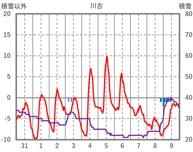| 日 | 時 | 気温 | 降水 | 風向/風速 | 日照 | 積雪 | 降雪 |