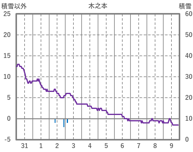 | 日 | 時 | 気温 | 降水 | 風向/風速 | 日照 | 積雪 | 降雪 |