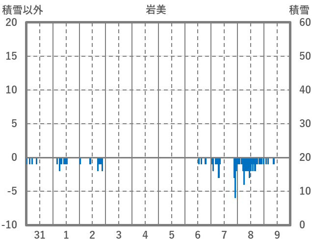 | 日 | 時 | 気温 | 降水 | 風向/風速 | 日照 | 積雪 | 降雪 |